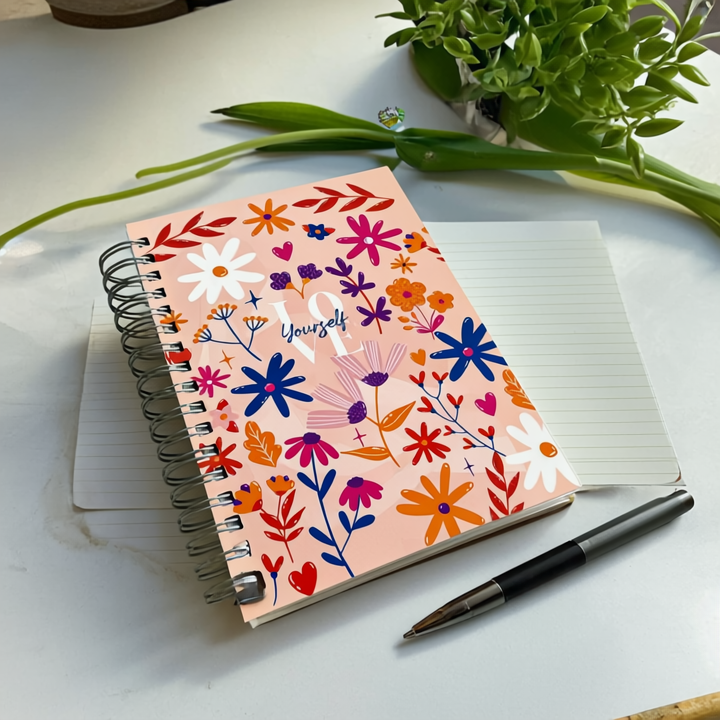 Love Yourself Floral Spiral Diary – B5 Hard Cover, 200 Pages